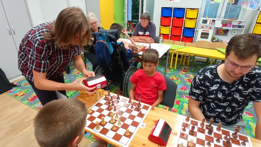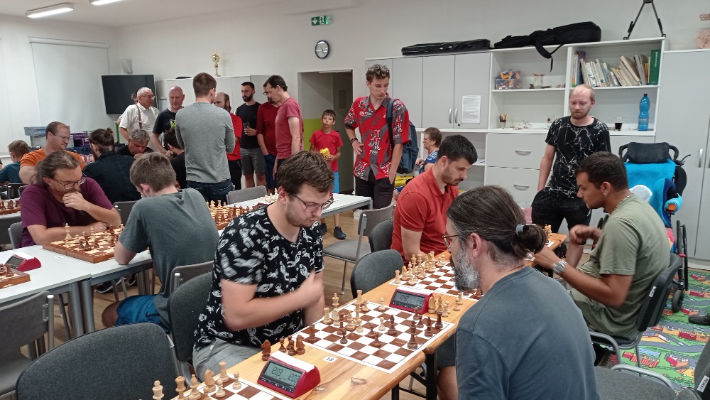 V pátek 21. července 2023 jsme v Mohelnici u příležitosti Mezinárodního dne šachu uspořádali již 11. ročník akce "Mohelnické letní šachování 2023". Původně se akce měla konat pod otevřeným nebem – v zahradě Domu dětí a mládeže Magnet Mohelnice, ale předpověď počasí nám na odpoledne slibovala déšť a bouřky, tak jsme stoly a šachový materiál pro jistotu rovnou připravili v prostorách DDM. Zájemci z řad široké veřejnosti měli možnost zahrát si simultánní partie s naší elovou klubovou jedničkou – Janem Kolářem, připraveny byly i stolky pro Fišerovy šachy, volné partie či Bughouse. Pro menší účastníky byly na odreagování v zahradě připraveny také fotbalové branky a míč. Zájemci měli možnost nahlédnout do obsáhlé kroniky našeho šachového klubu a kroužku. Pro stálé hráče i možné budoucí adepty šachové hry se od 16. hodiny konal oblíbený podvečerní otevřený turnaj v rapid šachu, kterého se zúčastnili jak zkušení registrovaní šachisté, tak i množství neregistrovaných hráčů, které jsme takto chtěli přitáhnout do naší šachové komunity. Původní plánovaný maximální limit 40 hráčů byl nakonec mírně překročen – turnaje se zúčastnilo 42 šachistů. Předpověď počasí vyšla – v 19 hodin se spustil prudký liják a dešťové kapky ustaly až s koncem posledního kola turnaje okolo půl deváté, což ocenili účastníci, kteří se pak domů vraceli na kole. A jak vlastně podvečerní šachové klání dopadlo ? Letos se zadařilo ženám. Vítězkou sedmikolového turnaje se stala Zdeňka Vránová se ziskem 6 bodů. Jen na pomocné hodnocení skončila druhá Taťána Nesporá (6 b.) a třetí místo obsadil neregistrovaný hráč Martin Sněhota (5,5 b.). Jsme moc rádi, že kromě návštěvníků z Mohelnice a okolí nás i letos navštívili šachisté ze vzdálenějších "destinací". Doufáme, že se všem příjemné prostředí rekonstruovaného Domu dětí a mládeže Magnet Mohelnice líbilo, děkujeme za účast ! Věcné ceny a odměny byly nachystány pro všechny účastníky akce. Za podporu a spolupráci děkujeme Šachovému svazu České republiky, DDM Magnet Mohelnice a pořadatelům z Šachového klubu Mohelnice, z.s.
